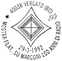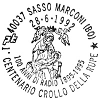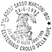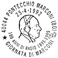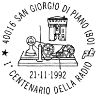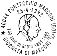 **** Annullo Primo giorno della prima delle emissioni " Cento Anni di Radio ". Un accordo intervenuto fra le Poste Italiane e quelle Sammarinesi stabilisce che tra il 1991 e il 1994 sia emesso ogni anno congiuntamente un francobollo dedicato ad uno Scienziato che con le sue ricerche e le sue invenzioni è stato precursore dell'invenzione della radio. |
